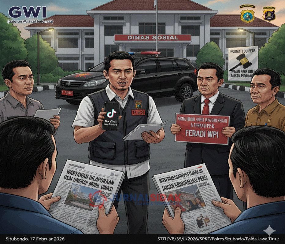 Situbondo – jurnalsidak.com Dugaan kriminalisasi terhadap wartawan mencuat di Kabupaten Situbondo. Seorang wartawan yang juga pemilik akun TikTok “No Viral No Justice”, dilaporkan ke Polres Situbondo setelah mengangkat dugaan penggunaan mobil dinas oleh PLT Kepala Dinas Sosial Kabupaten Situbondo.